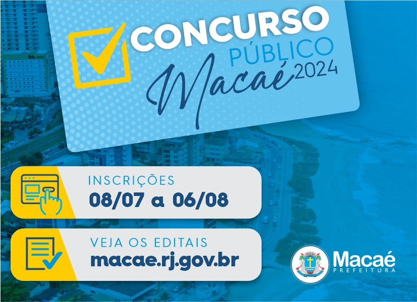Os editais nº 01, 02, 03 de 2024, que tratam dos detalhes do Concurso Público da Prefeitura de Macaé, foram divulgados em uma edição extraordinária do Diário Oficial de Macaé (DOM), nesta quinta-feira (4). As inscrições começam na próxima segunda-feira (8) e prosseguem até o dia 6 de agosto.